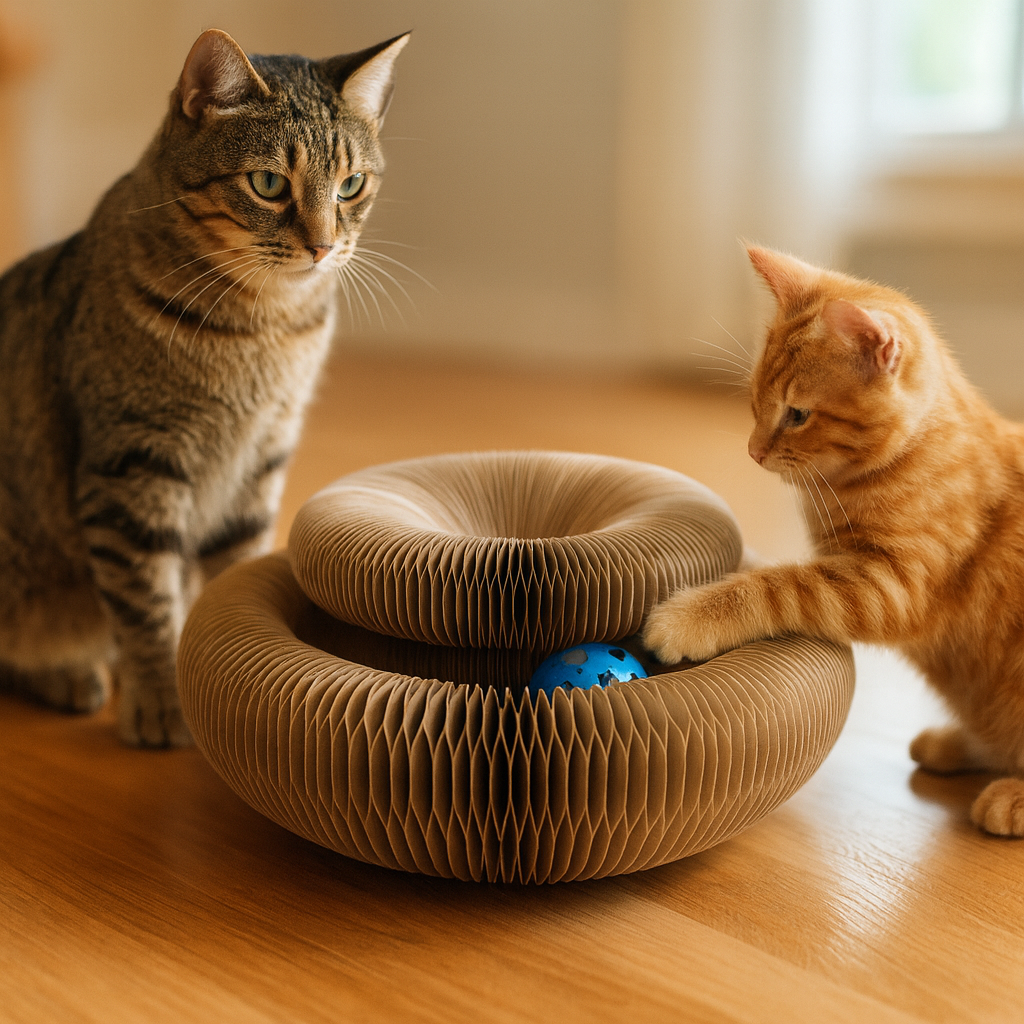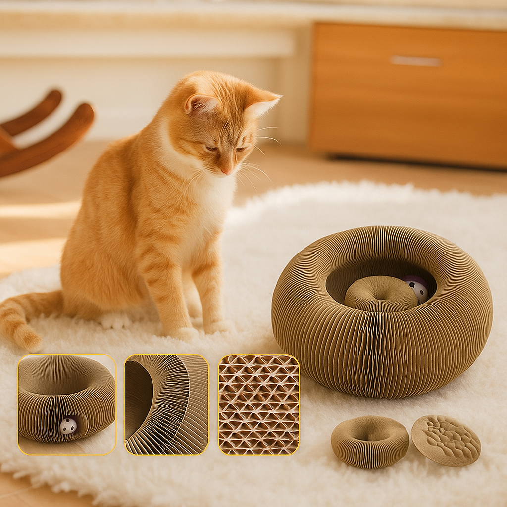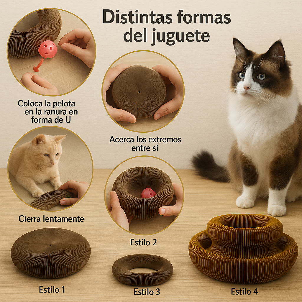 Diseñado con estructura tipo panal y materiales de cartón corrugado resistente, este tablero mágico ofrece horas de entretenimiento seguro para tu gato.